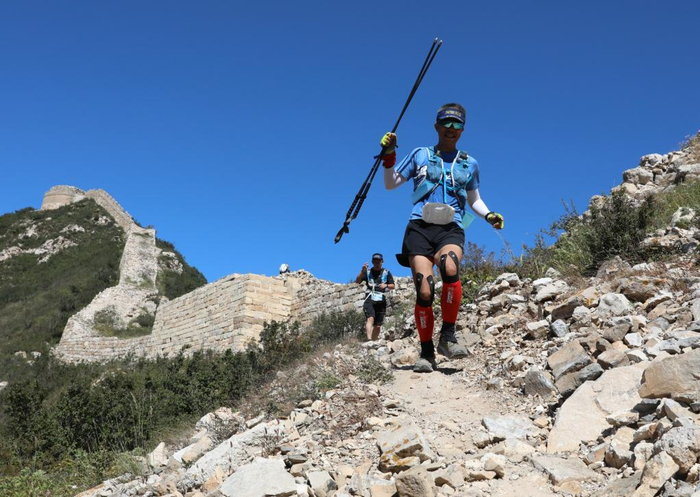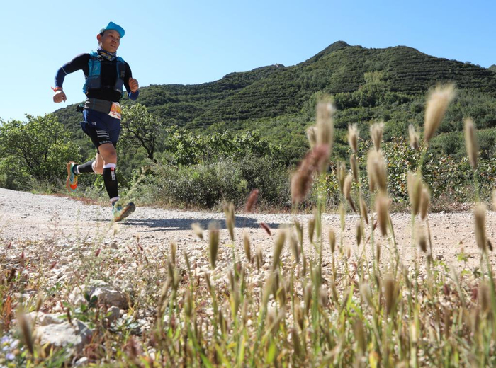 2020年9月19日,2020幽州古道超级越野赛在河北怀来开赛,图为参赛选手在比赛中经过水头长城。新华社发