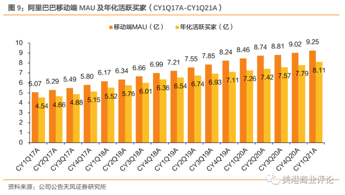 (阿里的移动MAU和年活跃买家增速)