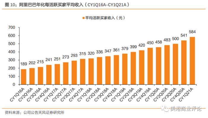 (阿里巴巴年化活跃买家的平均收入)