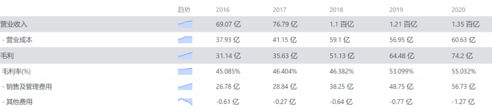 这一策略之下,波司登迅速腾飞, 2018年,波司登的营业收入直接跨入百亿关卡,毛利率也在逐年上升,到了2020年,波司登的毛利率已经达到了55.032%,甚至于可以和一些互联网公司相媲美。