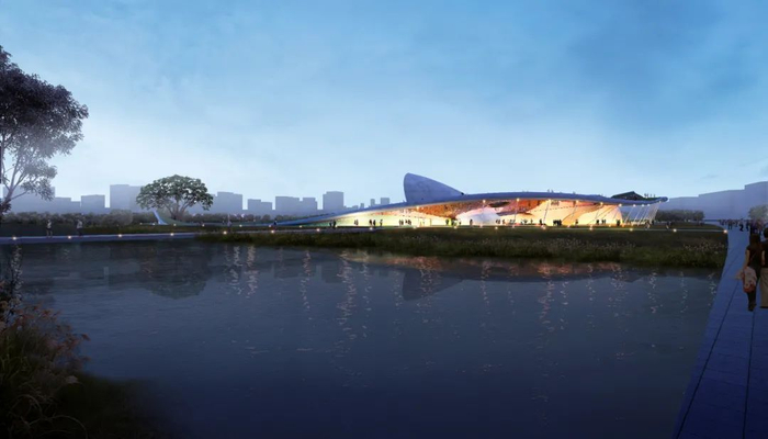 “星毯”中的“毯”,描述了建筑的形态特征——像一张卷曲起伏的绿色飞毯,轻盈地漂浮在公园内,降落在水边。