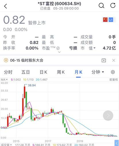 截至最新数据,*ST富控市值仅为4.7亿,股价为0.82元/股。