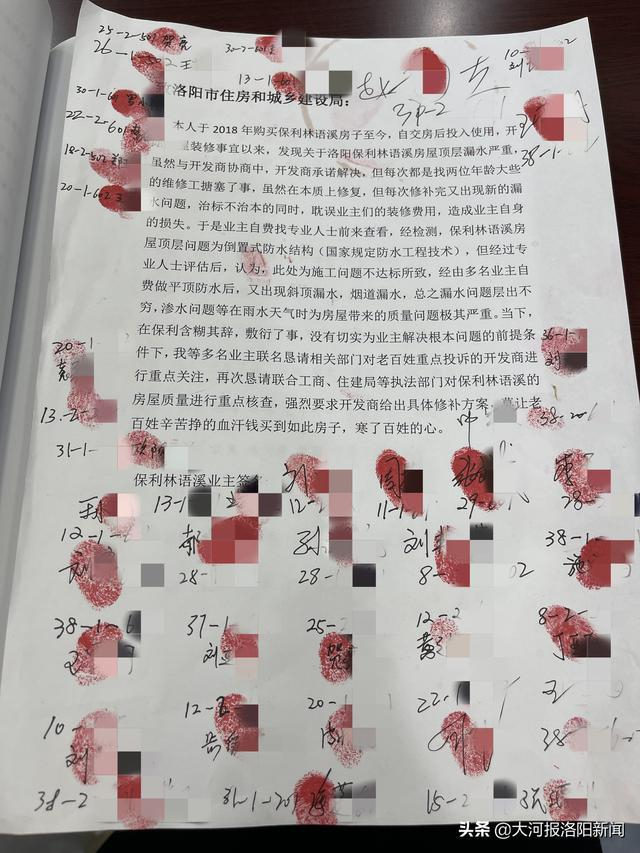 据业主们介绍,屋顶漏水问题迟迟得不到妥善解决,5月18日下午,数十名业主再次到洛阳市住建局反映情况,住建部门通知保利洛阳地区的一名雷姓副总到场与业主们进行了沟通。