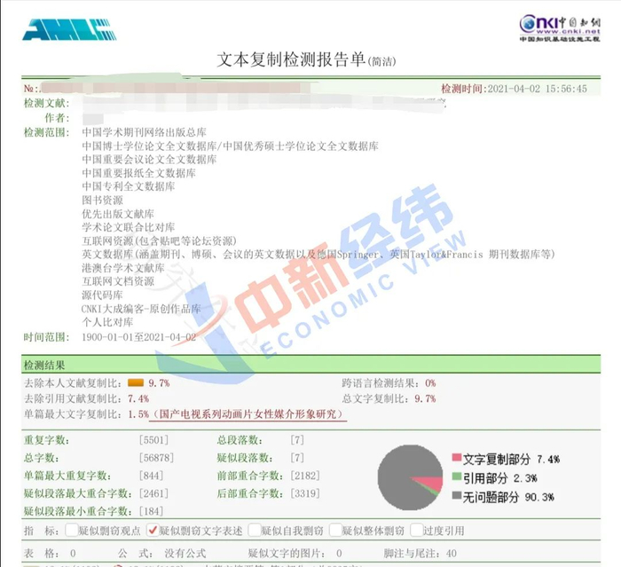 封面、导语图为毕业季资料图;知网论文查重报告单来源:四川某高校研究生查重报告截图