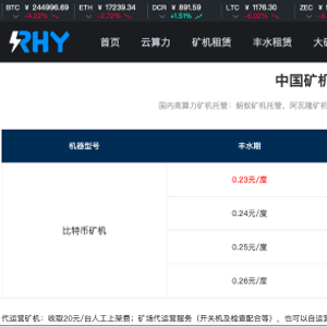 不过也有云算力平台RHY.COM,仍在向中国大陆客户售卖比特币、Chia等云算力、矿机租赁。