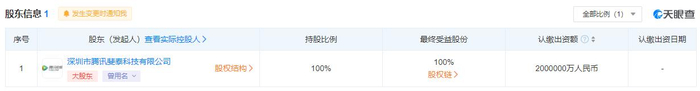 深圳市腾讯鑫信科技有限公司法定代表人为林海峰,股东信息显示,该公司由深圳市腾讯斐泰科技有限公司全资持股。深圳市腾讯斐泰科技有限公司第一大股东为深圳市腾讯计算机系统有限公司,持股比例为95%。