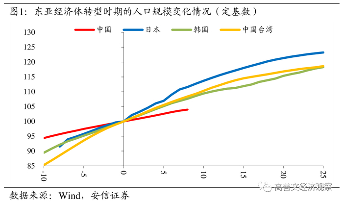 基于这样的思路,我们将对标的这一年作为观察的元年,来比较东亚经济体在元年前后几十年里的人口变化特征。