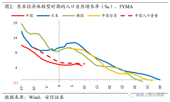 往后看,未来中国人口的自然增长率会继续维持当前的中枢水平、还是像其他东亚经济体一样进入转型后期的下滑阶段呢?
