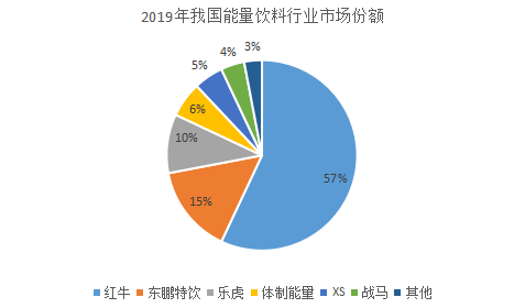 2019年,东鹏特饮市场份额为15%,在国内能量饮料行业中排名第二,红牛和乐虎分别位列第一和第三位,市场份额分别为57%和10%。不过,作为能量饮料开创者的红牛,由于深陷代理权问题纠纷,近些年公司的市场份额不断下滑。