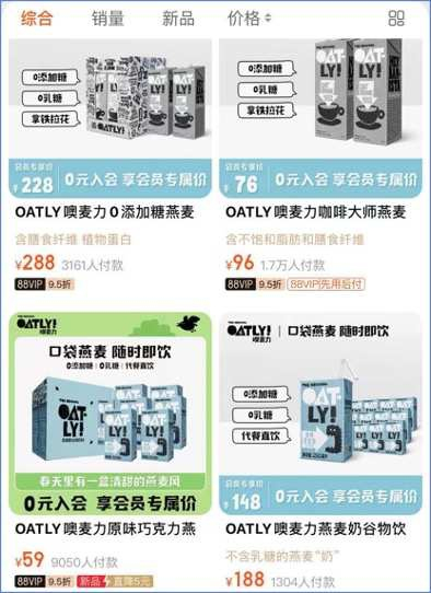 以小麦欧耶的销售情况来看,在它的天猫旗舰店上,最为畅销的产品为直饮型的燕麦早餐奶。oatoat的咖啡大师伴侣产品的销量,也逊色于直饮产品。