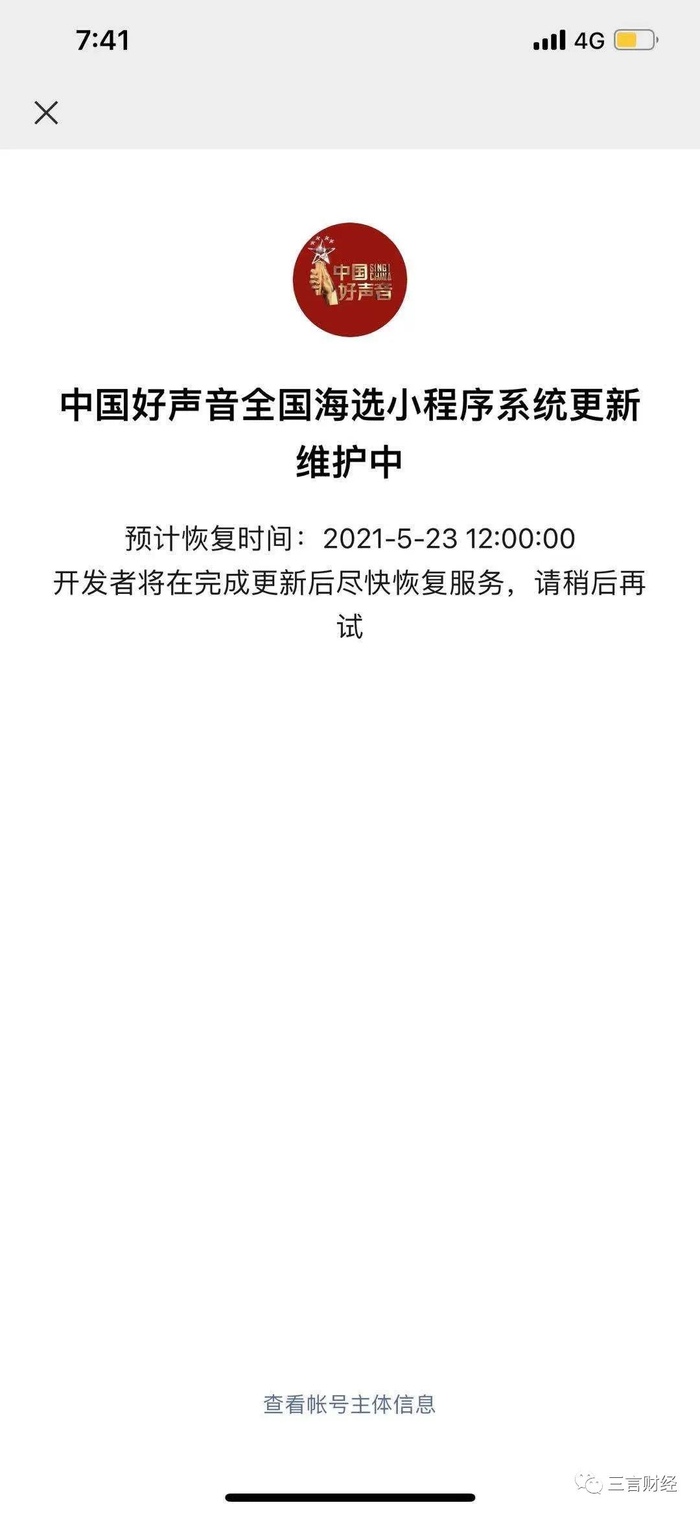 《中国好声音》全国海选报名小程序无法正常打开。