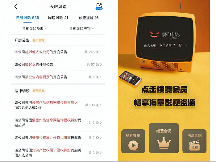 只不过,4月初版权问题便泼了南瓜用户一盆冷水。南瓜电影下架了大批海外影视资源,天眼查上南瓜电影所属的北京晓明筑梦数据服务公司涉及的侵权案件多达百起。南瓜电影发布公告称正在沟通版权中,会很快回归。前不久刚回归的南瓜电影,不少资源重新上架,实际上是恒腾网络大股东腾讯出手相助,授权了海量资源。