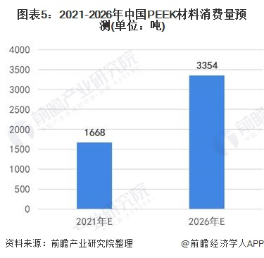 根据中国化工信息中心资料,预计未来5年中国对PEEK的需求仍将保持15%~20%的增速,据此初步测算到2026年国内PEEK需求量将达到3354吨。