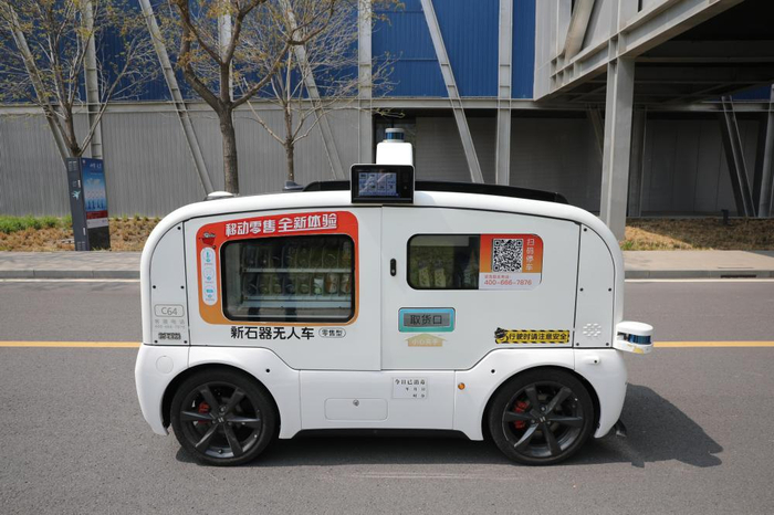 △雄安新区管委会内招手即停的无人售货车,让人对“数字雄安”充满了想象。(李茂君 摄)