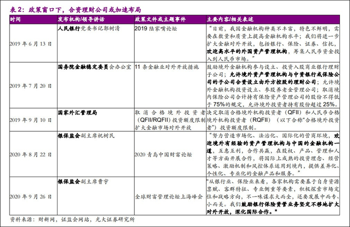 值得关注的是,随着中国财富管理行业的对外开放进程不断加深,外资资管机构除了参与理财子公司的合作外,还积极布局其他在华业务。