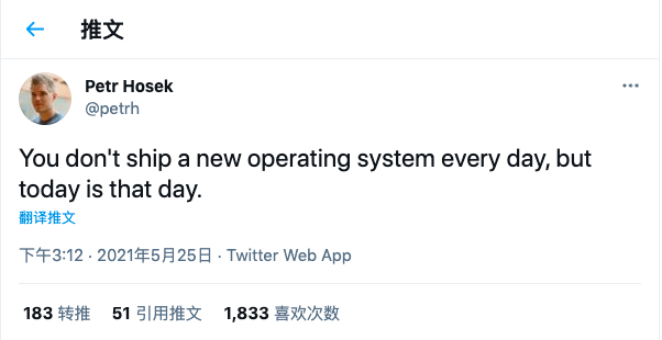 谷歌 Fuchsia OS 项目技术负责人 Petr Hosek 在推特上庆祝了新平台的发布:“今天是个重要的日子,我们发布新操作系统啦!”