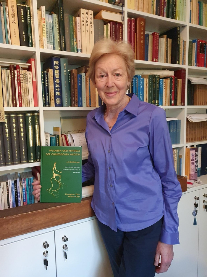 文淑德女士与她翻译的德文版《中药材鉴定图典》 《中药材鉴定图典》是由香港浸会大学中医学院赵中振、陈虎彪教授共同主编而成,是其研究团队通力合作,三十年的心血之作。本书把传统经验进行现代科学诠释,是对中药的继承与创新,有重要的学术价值、社会价值和文化价值。