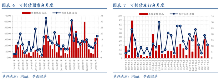 2021年1至4月,47家上市公司可转债发行预案,合计融资规模771亿元。其中4月份预案公告支数和规模均较高,4月份为上市公司年报集中披露季,上市公司或跟随年报推出新的融资方案。