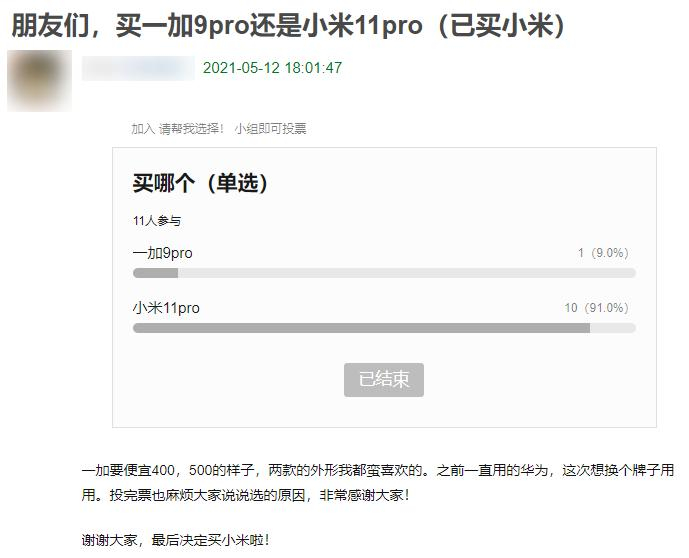 通过投票看得出来,小米 11 Pro 以压倒性优势胜出,看来小米还是强啊。。。