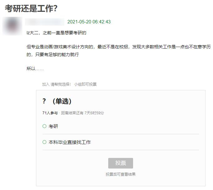 还有问读研是选专业还是选学校等等等等,你能在这个小组看到各种学业和工作上的问题。