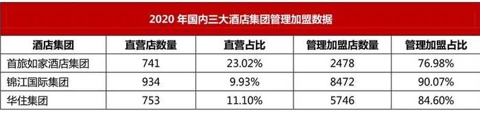 从资产管理模式来看,以重资产投资或者租赁占比较高的集团损失更为惨重,而以轻资产运营尤其是特许经营为主的集团相反亏损可控甚至于盈利,如精选集团。截止2020年12月31日国际酒店集团直营店占比万豪为0.86%、希尔顿为0.94%、凯悦为3.87%,国内头部酒店集团直营店占比来看,华住为11.10%、首旅如家为23.02%、锦江为9.93%。由此可见,国内酒店集团的直营店占比与国际酒店集团相比仍有下降空间,通过轻资产推进,内外资酒店酒店集团的力量对比态势将愈加清晰。