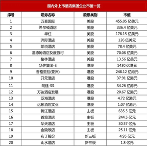 一、上市酒店集团最新市值概览:国内酒店集团数量规模发展迅速,市值方面仍需赶超