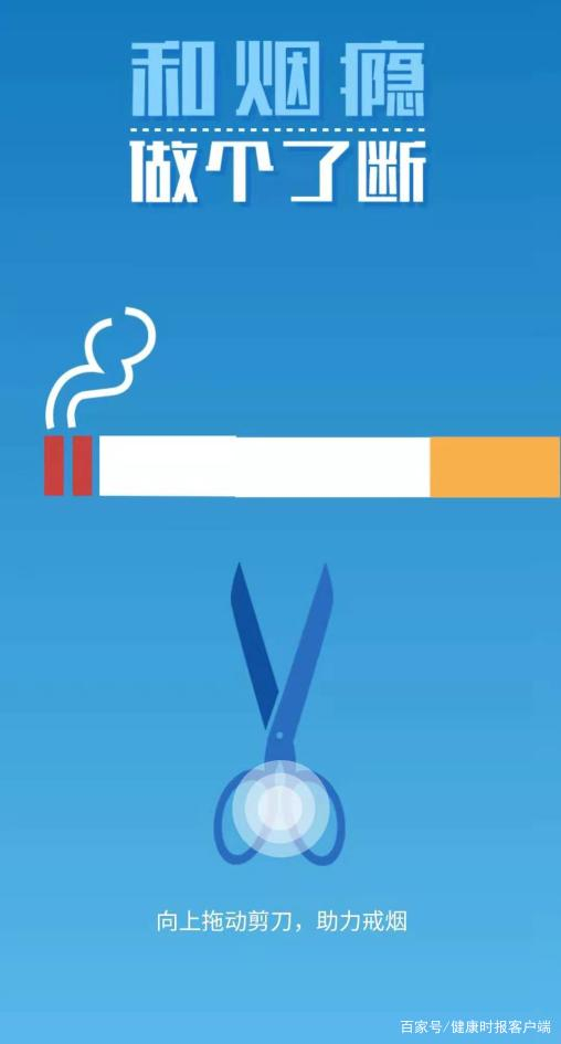 健康时报记者在微信中搜索“中国戒烟平台”,页上出现了一只点燃的香烟,和一把剪刀,最上方还标注了7个大字“和烟瘾做个了断”,记者用手指滑动剪刀,烟头瞬间掉地,同时出现“中国权威戒烟资源库”页面。