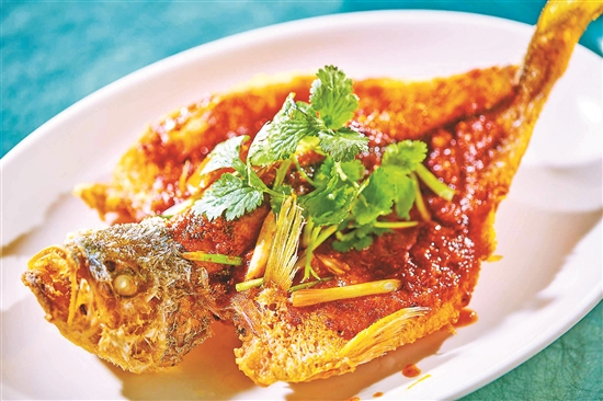 莆田餐厅今年推出“叄巴酱淋黄花鱼”这道新菜,一听酱料名称就知道具有浓浓的东南亚风味。这家来自新加坡的米其林一星餐厅,采用传统配方,用多达十几种香料手工炒制出叄巴酱,并加以改良,加入番茄汁、虾酱、酱油,让酱料的味道甜辣酸咸皆备,赋予黄花鱼独特的风味。今年莆田举办“黄花鱼节”,由于有多重口味,来个全鱼宴,只要你用心设计上菜和品尝的先后顺序,肯定会越吃越有滋味。