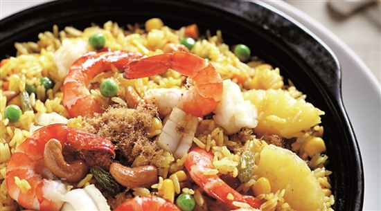 泰靓的菠萝海鲜炒饭,米饭粒粒分明,菠萝、米饭、海鲜比例如同黄金搭配,味道清新,满口鲜香,分量恰到好处。该餐厅的必点菜咖喱皇炒蟹加上一碗泰国香米饭简直是绝配,好吃到连手指都会吮干净,让人难以抵挡的咖喱蟹,每一口都会给人带来满满的幸福感。
