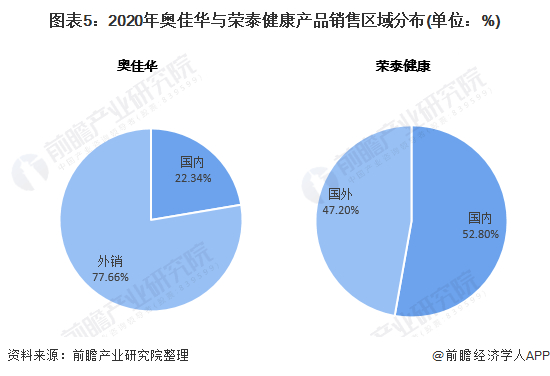 奥佳华以出口为主,荣泰销售布局较为均衡