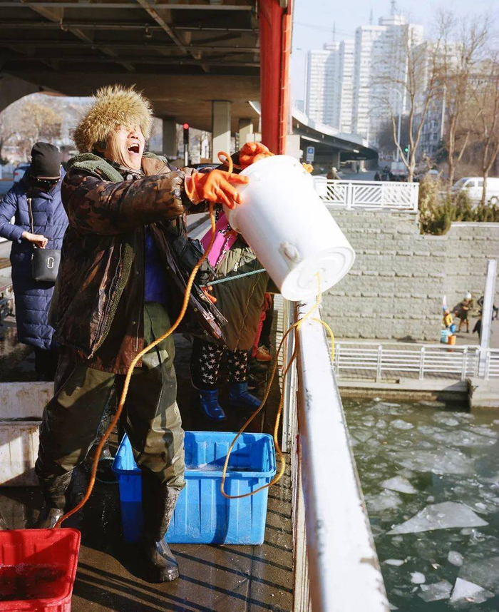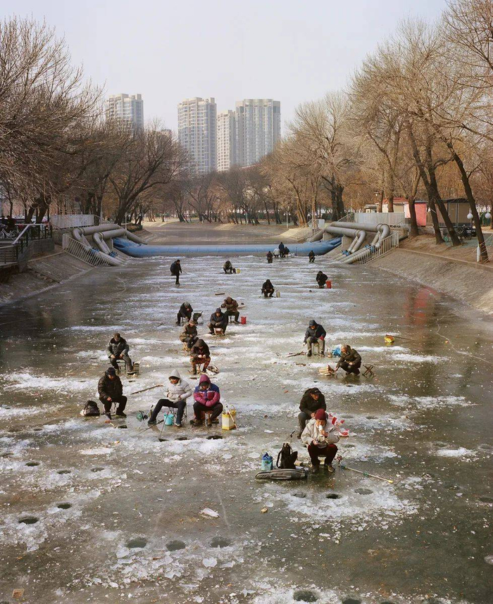 冬天的时候,河面结冰,人们就走到冰面上去,钻个洞,开始冰钓。似乎冰层和低温并不能消减他们对钓鱼的热情。