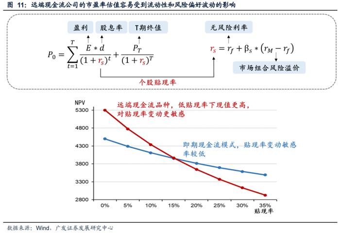 由于成长性公司的盈利增速变动较大,且其估值受分母端影响弹性较大,因此传统PEG方法在对成长性公司的判断上较为不稳定。一方面,远端现金流的成长性公司和行业的盈利波动性不确定性大,未来的G的波动性较大、稳定性差。成长性公司虽然往往预期盈利增速较高,但其经营波动的风险更大,导致公司未来的盈利增速(G)波动较大。另一方面,远端现金流公司当下的市盈率估值容易受到流动性和风险偏好波动的影响,从而导致PEG代表性降低。根据DDM模型,远端现金流品种在低贴现率下现值更高,对贴现率变动更为敏感。当流动性和风险偏好显著改善时,远端现金流品种的成长性公司的估值较高,导致PEG偏高。但此时由于市场风险偏好在持续改善,市场对成长性公司的估值接受度也在上行,因此此时PEG的投资效率降低,对投资机会的指示效果下降。因此传统PEG框架下对于成长性公司的判断不够稳定。