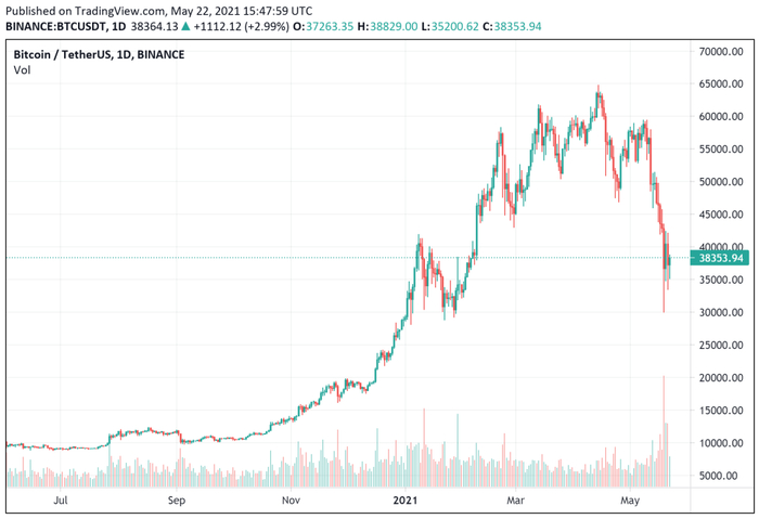 5·20前夕,单身的币圈人当然没有等来爱情,却等来了财富和自由的幻灭。比特币遭遇本轮牛市以来最大的一轮闪崩,24小时内暴跌30%。