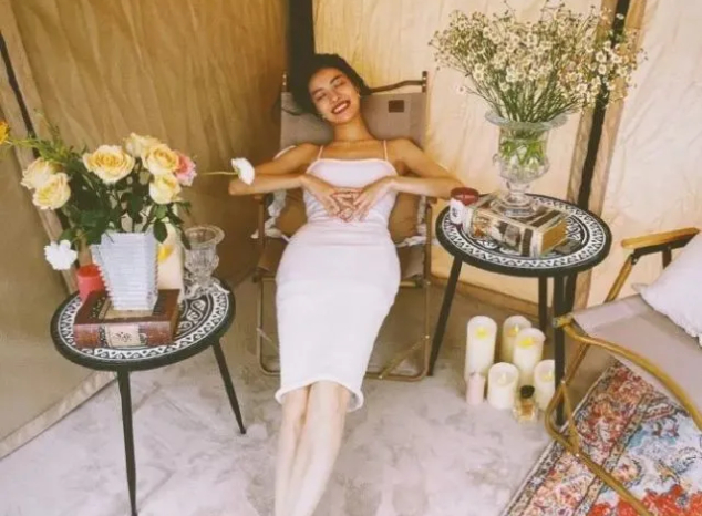 众女星也在鲜花、蜡烛和异域风的地毯上,发现了最舒服的躺平姿势。