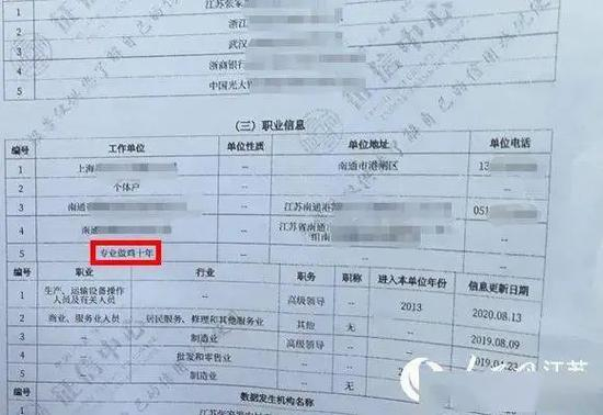 4月初,江苏南通的房女士在查询个人征信时发现,其职业信息“工作单位”一栏中竟然出现了 “专业做鸡十年”的侮辱性字眼。