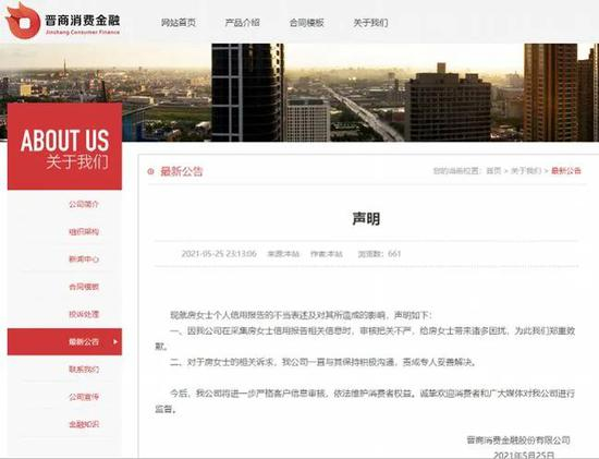 这样,晋商消费金融才在官网正式向房女士道歉。