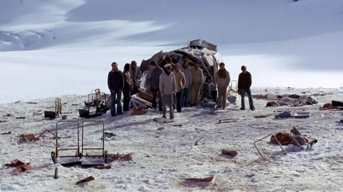 在空难的发生后的第10天,幸存者为了在冰天雪地的恶劣环境中存活,被迫手拉手立下了一个“恐怖协议”——“如果我死了,你可以吃掉我。”幸存者最终靠遇难者的人肉果腹才活了下来。
