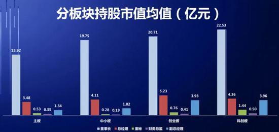 从持股市值上看,科创板董事长以及各高层持股市值远高于主板。2020年是科创板飞速发展的一年,科创板实现了资本市场和科技创新更加深度的融合。作为以科技创新型企业居多的科创板,吸引了大量高薪高科技人才,人力资源资本化程度更高。