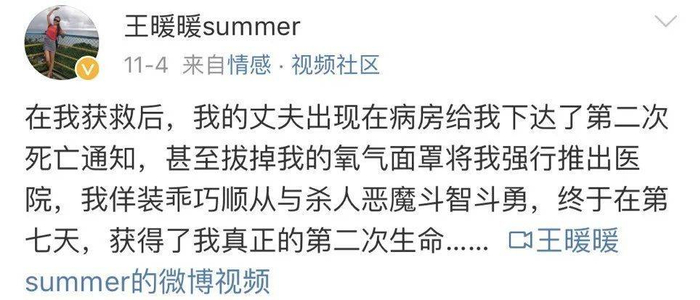 连手术都没做完,王暖暖并未脱离生命危险,医生并不答应。气急败坏的丈夫,竟然直接拔掉了妻子身上所有监护体征的设备以及氧气面罩。