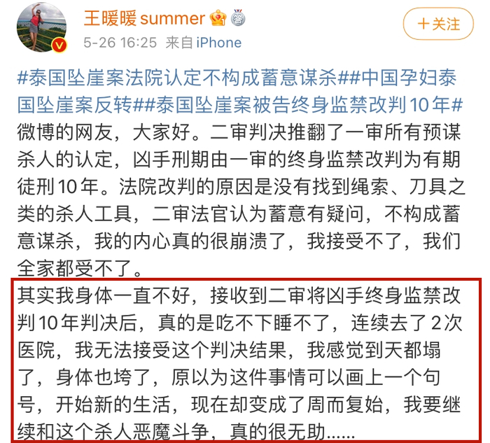 2020年3月24日,泰国法院一审宣判被告人俞振东蓄意谋杀罪名成立,终身监禁,王暖暖终于迎来了属于她的天明。