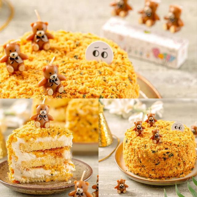 岁月可以悄悄带走时光,但是带不走我们的童心。很多小时候的美味,无论到什么年龄,都依然是无法忘记。COOPS自然醒的这款沙爹肉松蛋糕,用酥脆不软烂的海苔肉松和轻盈柔软的戚风蛋糕胚、特调沙爹奶油夹馅,为你还原放学后最好吃的那一口味道。三只可爱的小熊蜡烛,让这款蛋糕实打实地满足你的童心。