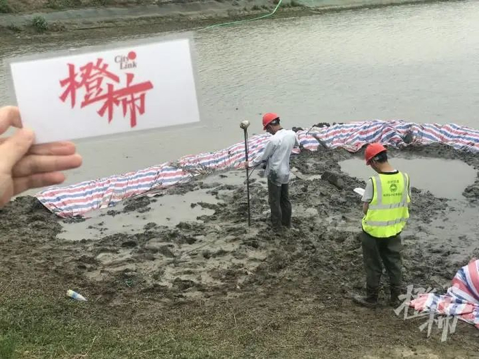 昨天,来自浙江省地球物理地球化学勘查院有关专家,在现场提取了辐射数据和土壤样品。