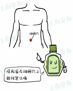 将风油精数滴滴在肚脐(神阙穴)内,用止痛膏布或普通胶布覆盖,可起到祛寒止痛的作用。此法对于因受风寒、过多吃冷饮等引起的寒性腹痛效果更好。