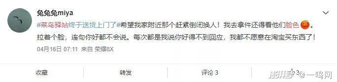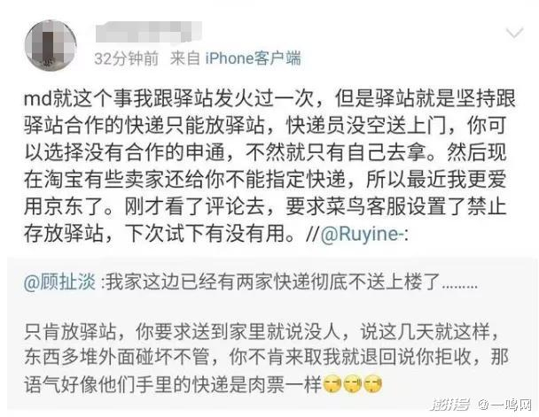 在这种情况下,和菜鸟驿站发生冲突的居民不少,很多居民都选择了拒绝将快递放在菜鸟驿站。拒绝自己步行大老远去取快递,浪费原本不属于自己的时间成本。因为常常去了,得到的也是菜鸟驿站员难看的脸色。