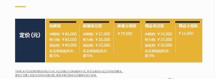 不同机构全程班课程的核心内容差别不大,但收费却相差悬殊。《财经》记者收集整理了市面上部分机构2021年保研全程班的收费明细,仅一个全程班收费就从4000元跨到了5万元左右。即使是同一家机构,不同的班级收费标准也相差很多。