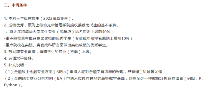 北京大学光华管理学院某硕士项目推免招生申请条件