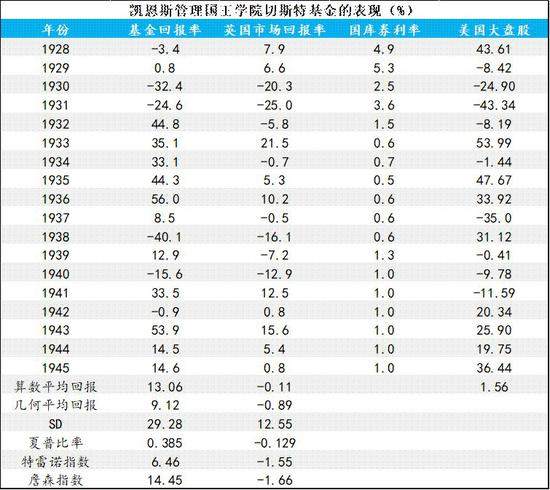 资料来源:“J. M. Keynes‘s Investment Performance: A Note”,Jess H. Chua and Richard S. Woodward, The Journal of Finance Vol. 38, No. 1 (Mar., 1983), pp. 232-235.
