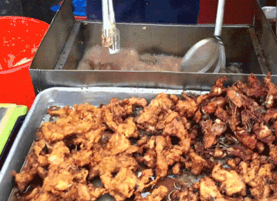 用油必须要用豆油+鸡油的混合才香,而鸡油市面上没得卖,都得小贩自己买回家市场边角料来炼。