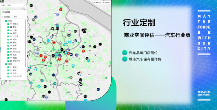 我们扩展了服务的外延,除了会持续打磨知城数据平台标准化的产品模块外,还会和我们的数据生态伙伴合作,针对性地开发行业定制产品。例如这两年越来越多入驻购物中心的新能源汽车品牌,我们和汽车行业里的咨询公司合作,开发了商业空间评估——汽车行业版,加入了更多独家的汽车品牌门店落位数据、城市汽车保有量数据。
