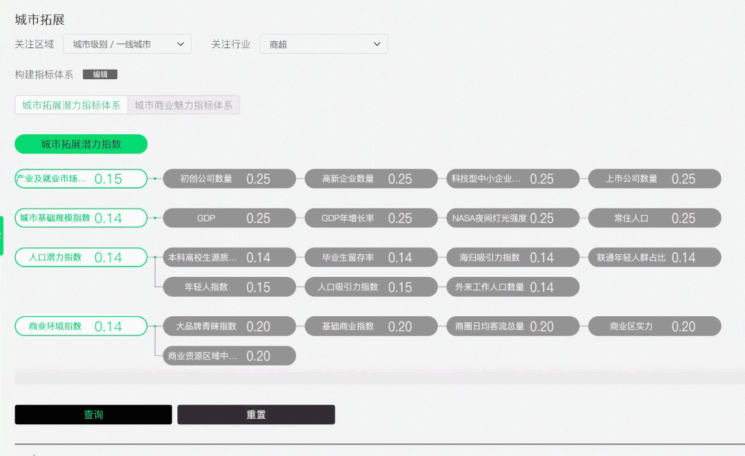 Δ支持自定义构建城市拓展潜力体系和城市商业魅力指标体系